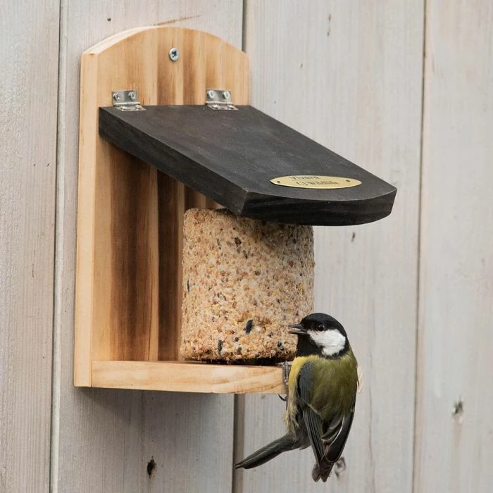 This bird feeder is designed to hold a single Acadia Peanut Butter Bar and with plenty of space at the front and on both sides you can attract multiple birds to your feeder to enjoy these treats. The roof on the feeder can be simply lifted for you to slide a bar over the wooden rod, keeping it securely in place.