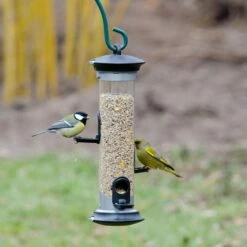 The 3 perching rings allow birds to feed in their natural feeding position (facing forwards) and gives birds a clear view of the surrounding area to watch for predators. The off-set spacing of the ports provides each bird with a clear feeding area which results in more hygienic feeding. The feeder has a screw thread in the base making it compatible with many of our feeder accessories (excluding guardians).