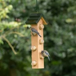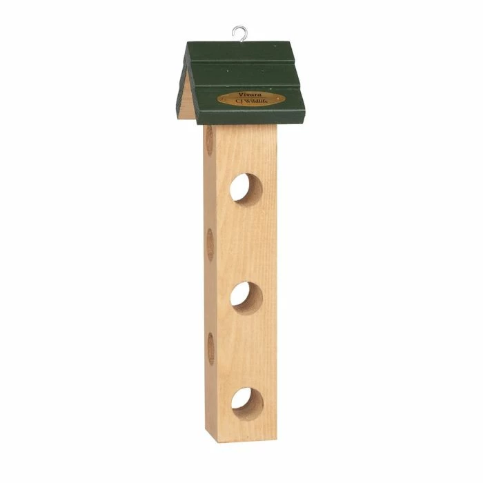 This innovative suet log bird feeder has the capacity to hold up to 6 suet logs at one time, making it a popular hit with the birds. It has been crafted with care using wood and had a quaint green scalloped style roof which adds to the lovely aesthetics of this feeder.