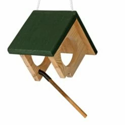 The hanging Cork Weighted Peanut Butter Feeder is designed so that only small birds can reach our delicious peanut butter using the weighted perch. When a small bird (up to 20g) lands on the perch, it doesn’t move, so the bird can easily access the food. When large birds or squirrels land on the perch, it tilts away from the feeder.