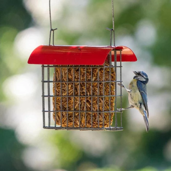 This Dried Mealworm Block is packed with protein. In addition to fat, this food is very important for birds, especially in the breeding season. Providing Dried Mealworms or Insects is a great way to help supplement natural bird food supplies for birds.