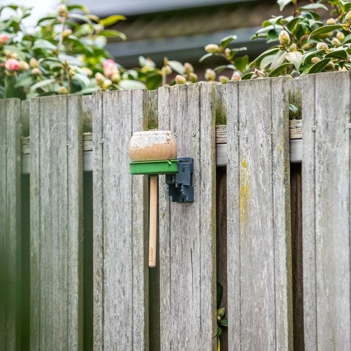 The LONA P1 is a unique vertical peanut butter jar holder. Your garden birds climb via the vertical stick to the delicious LONA peanut butter. It is easy to attach to a wall, downspout, tree trunk, fence or pergola. Changing the peanut butter jar is done in one simple twisting motion. This sustainable product is recyclable.
