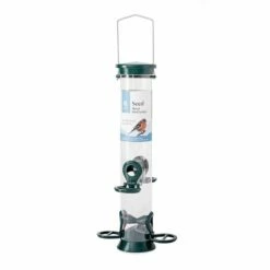 Other benefits include the easy flow base, tough hanger and cap – all constructed from corrosion resistant solid metal alloy. Seed feeder tubes are made from UV-stabilised polycarbonate, which will not deteriorate when exposed to sunlight.