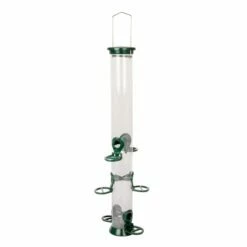 Other benefits include the easy flow base, tough hanger and cap – all constructed from corrosionresistant solid metal alloy. Seed feeder tubes are made from UV-stabilised polycarbonate, which will not deteriorate when exposed to sunlight.