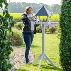 Our bird tables are designed with large feeding areas to allow multiple birds to feed at the same time and generous overhanging roofs to protect food in wet weather. The tables and roofs are constructed from high quality painted timber so you and your birds will enjoy them for many years to come.