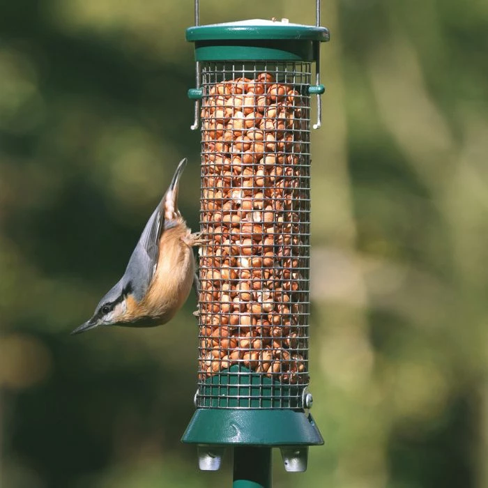 The feeder is suitable for feeding peanuts, look out for the new National Trust Premium Peanuts bag sizes available on our website. All our peanuts are high in essential proteins and oils and are perfect for a range of garden bird species. It is important to use a specified peanut feeder with whole nuts as small birds can chock on large pieces, but we also offer Premium Kibbled Peanuts for smaller birds and fledglings. Our feeders are designed and tested by our own team of ornithologists, which helps to make sure our feeders meet the needs of the birds, as well as the needs of our customers.